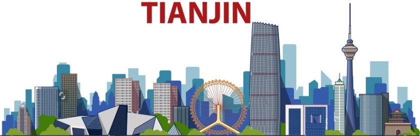 Tianjin 天津, literalmente «la balsa celestial» o también conocida actualmente como «la ciudad de los puentes» ya que posee 24 puentes que unen los 6 distritos a lo largo del río Hai, es un municipio de la República Popular de China con rango equivalente al de una provincia.