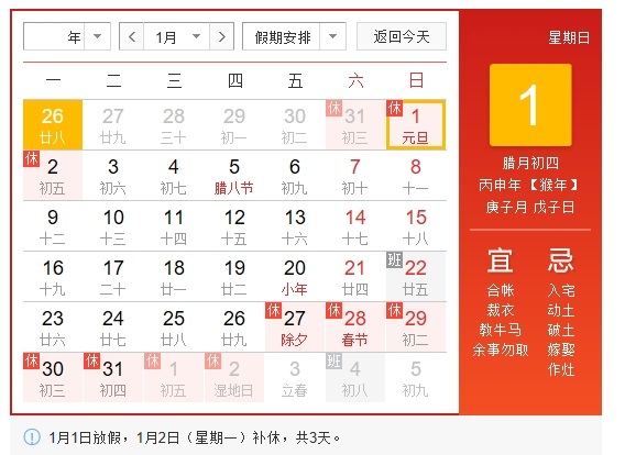El Yuandan元旦 es el primer día del año en occidente, según el calendario solar, el 1 de enero.