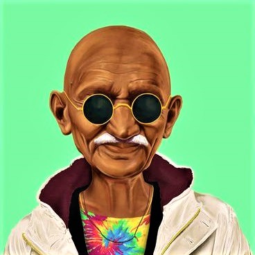 Mohandas Karamchand Gandhi મોહનદાસ કરમચંદ ગાંધી, más conocido por el nombre honorífico de Mahatma Gandhi (en sánscrito e hindi maha: «grande» y ātmā: «alma»), o como Bapu(papá) por sus más cercanos, o también«el peregrino de la paz», fue un político, pensador, abogado, activista y héroe nacional indio. Dirigente más destacado del Movimiento de Independencia contra el Raj Británico, Gandhi fue un defensor de la desobediencia civil no violenta(áhimsa), promotor del vegetarianismo, del ayuno como purificación, de las viejas tradiciones hinduistas, rechazaba la lucha armada y cualquier forma de maltrato a los seres vivos.