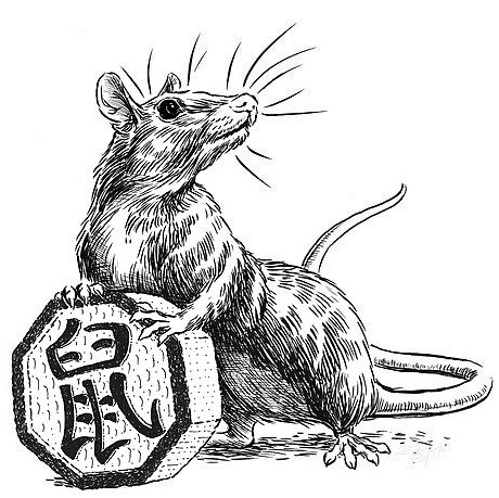 En antiguos registros referentes a la astrología china, la rata era portadora de protección y prosperidad material. Siendo el primero de los 12 símbolos del zodiaco según el “Ciclo Sexsagenario” (sistema numérico cíclico de sesenta combinaciones de dos ciclos básicos: los diez Troncos Celestiales 天干 y las doce Ramas Terrenales 地支), por el cual cada signo constaba de 60 años (tiempo del reinado del Emperador Amarillo), distribuidos en 5 ciclos de 12 años cada uno.