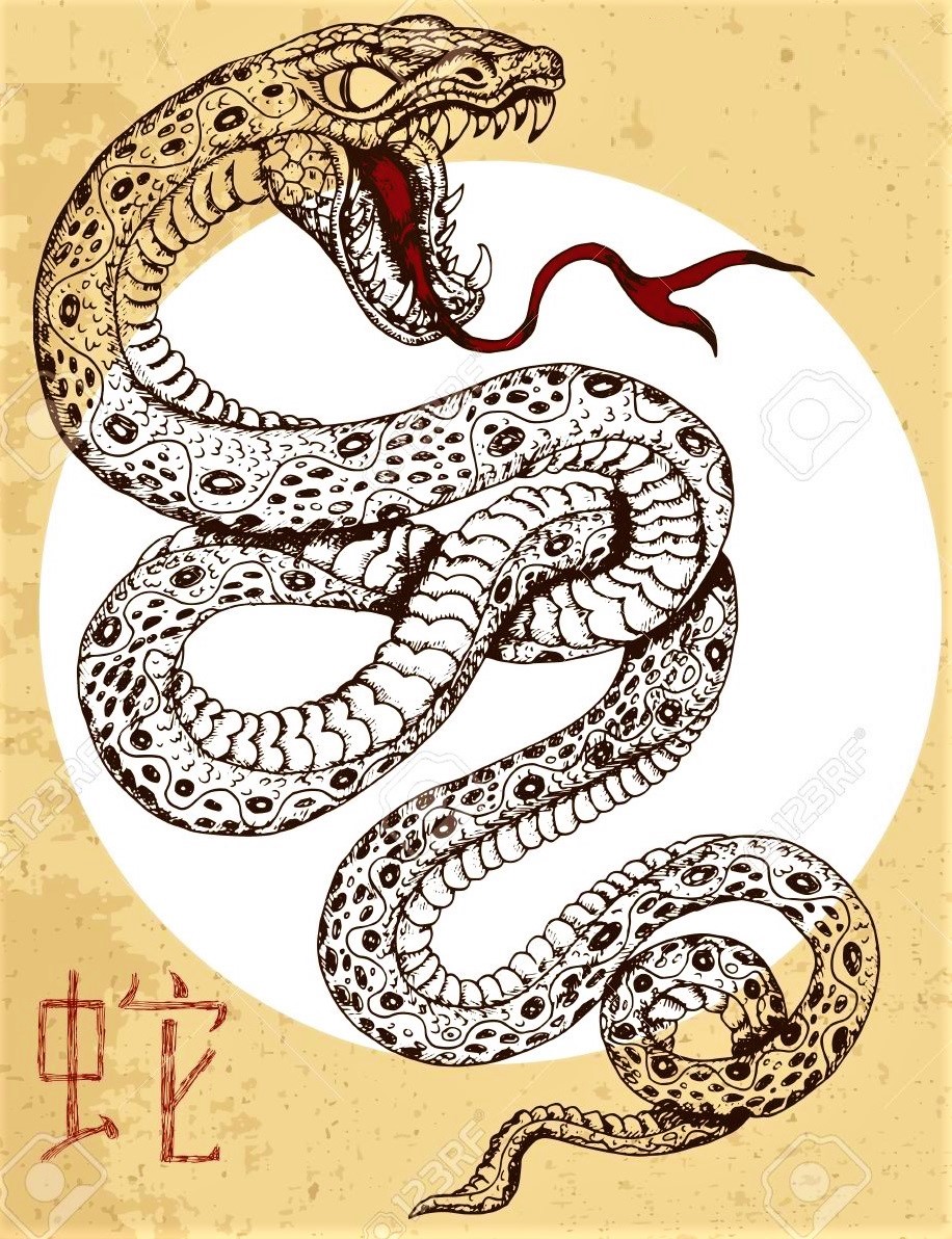 La serpiente como signo zodiacal chino se encuentra en leyendas taoístas, budistas y en varios mitos provenientes del folclor regional. En la tradición taoísta, los animales zodiacales fueron elegidos por el Emperador de Jade (una de las tres divinidades del taoísmo); mientras que otras historias atribuyen la selección a Buda.