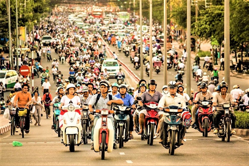 Ho Chi Minh es considerada la ciudad con mayor número de motos por habitantes del mundo, con un promedo de 1.5 vehículos por persona. Para moverte por la ciudad puedes hacerlo caminando perfectamente, pero si eres de los que vive la vida al límite con tu cuerpo chorreando adrenalina y ya no tienes nada que perder en este mundo, pues te puedes rentar una moto, muchas veces no te piden ni licencia de conducción y debes tener muy mala suerte para que te pille un policía, aquí el permiso de conducción temeraria te lo entregan con el carnet de identidad al nacer.