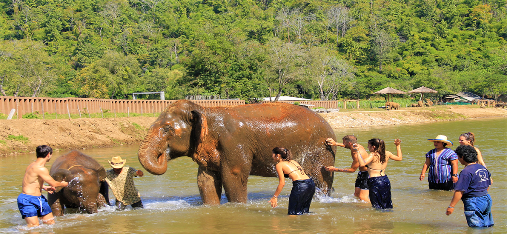 Por su parte, el tour de día completo también se conforma de un máximo de 15 personas y tiene un valor de 2,400 bahts (menores de 8 años 1,200 bahts y menores de 3 años gratis). La recogida en Chiang Mai se realiza sobre las 08:00 para llegar al campamento alrededor de las 10:00. Al igual que el tour de medio día, también tendrás las opción de alimentar a los animales, bañarte con ellos en el río, y la diferencia es que también incluye un baño en una piscina de barro y almuerzo tradicional tailandés.