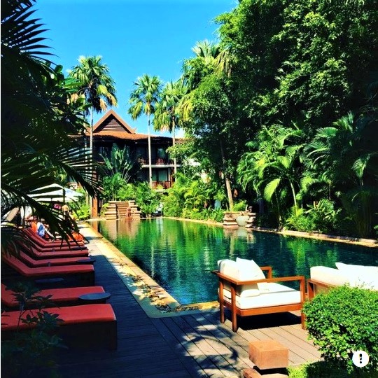 Sus habitaciones con diseños tradicionales están distribuidas en medio de la exuberante vegetación, con detalles en madera al más estilo jemer.