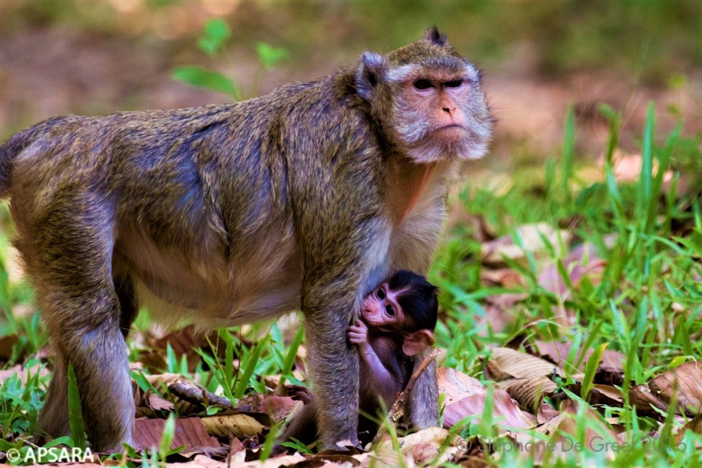 Debido a la conversión de la tierra de los bosques a la agricultura en las últimas décadas, muchos mamíferos se han alejado de las personas y han encontrado refugio en este lugar. Los más comunes son los macacos de cola larga, las ardillas rayadas y los murciélagos de frutas. Aunque rara vez se ven, los estudios han demostrado que Angkor es el hogar de ciervos de ratón y gatos leopardo. Si bien una gran parte de la fauna se perdió durante décadas de guerra civil, la Autoridad Nacional de APSARA está trabajando actualmente en cooperación con Wildlife Alliance para reintroducir más animales en peligro de extinción en un futuro cercano.