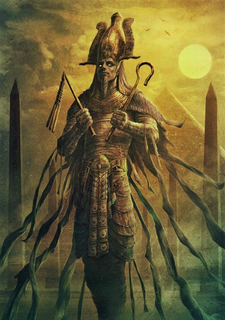 Osiris era considerado como una hipóstasis local de su padre Geb, el dios de la tierra por excelencia. También se le puede ver como el dios de la inundación anual o de la vegetación, y soberano de las necrópolis y del mundo inferior. Los textos de las Pirámides, de inscripción solar, están llenos de contradicciones cuando se refieren a Osiris, tratándole a veces con el debido respeto como el rey del mundo de los muertos, pero en otras ocasiones con la irritación que merece un intruso.
