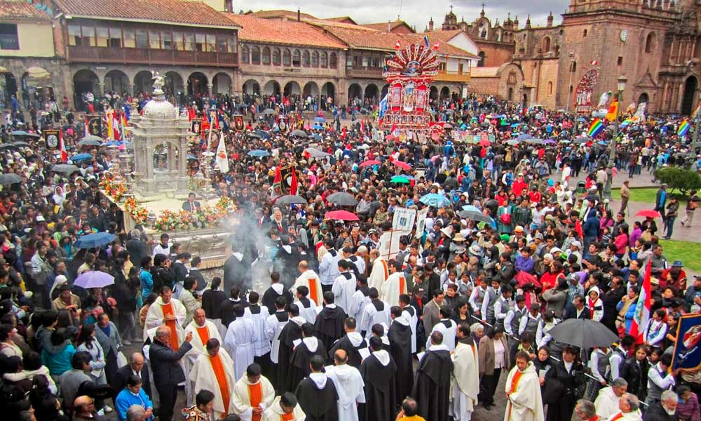 Celebrada por lo general en las primeras semanas del mes de Junio, unas nueve semanas después de semana santa siguiendo el calendario de la Iglesia y declarada «Patrimonio cultural del Perú» el 6 de agosto de 2004 por el Instituto Nacional de Cultura, es una procesión de quince santos patronos muy venerados en la ciudad, uno de los eventos religiosos más importantes del calendario católico. La misa se realiza en idioma quechua y entre las imágenes que seguirán el recorrido el día jueves destinado a celebrar esta fecha cristiana se encuentran al menos 16 Vírgenes y Santos que han sido ataviados con bellísimos bordados de oro en sus vestiduras y que saldrán en procesión acompañadas por bandas de músicos y grupos folclóricos tras el Santo Sacramento que es llevado por el Arzobispo de la ciudad hasta la catedral. La ceremonia por lo general culmina al empezar la noche, cuando la última efigie hace ingreso a la catedral y donde cada congregación se retira al ritmo de danzas y bebidas hasta el día de la octava.