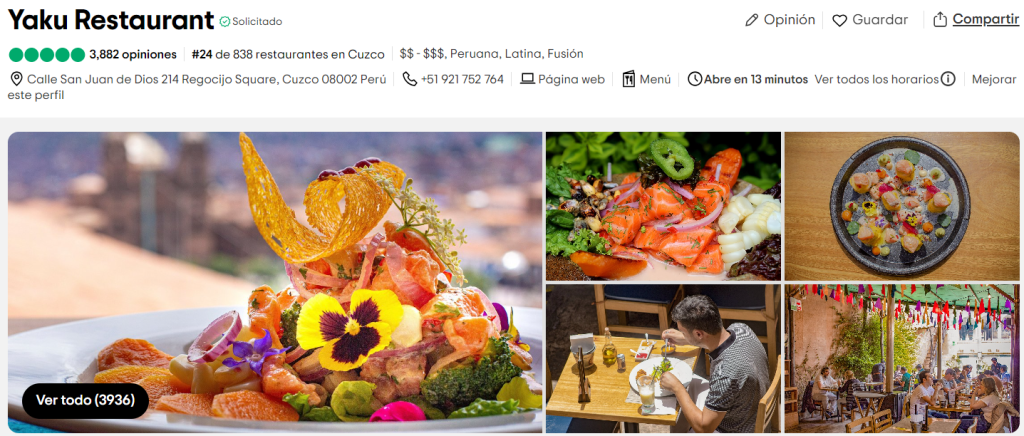 5- Yaku, cocina de altura. En este restaurante podrás disfrutar de la más variada, tradicional y contemporánea gastronomía peruana elaborada con productos orgánicos del Valle Sagrado del Cusco.
