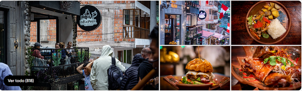 La mayoría de los restaurantes en Aguas Calientes son pequeños y se encuentran todos en un mismo sector, a lo largo de la calle Pachacutec o en los alrededores, y ofrecen una carta variada de comida local e internacional. Los más floridos son a su vez los más caros ya que en la noche también funcionan como pubs y centros de recreación nocturnos, pero al final el menú se repite en casi todos, por tanto, lo ideal es buscar uno que cumpla con tus expectativas de comodidad y entorno.