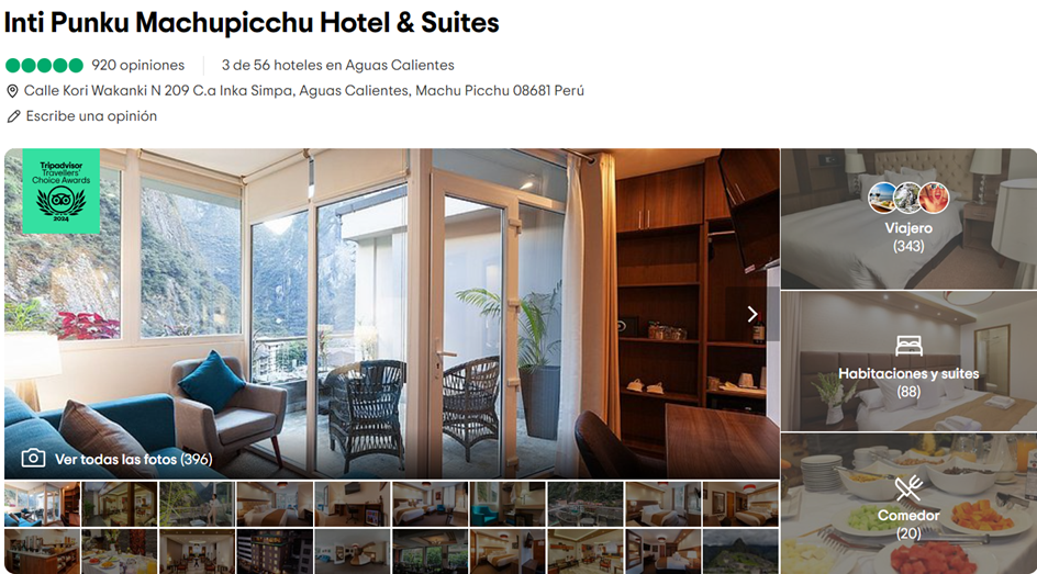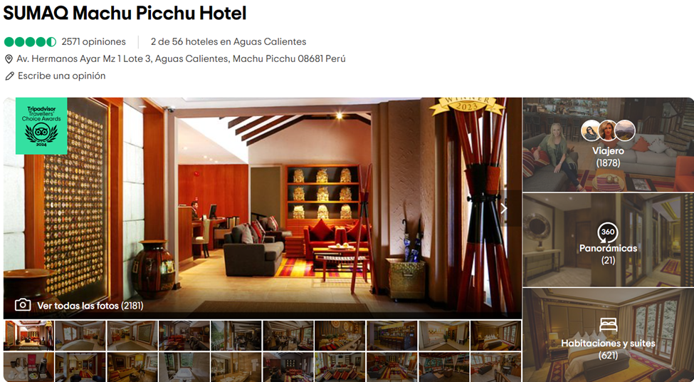 Sitio Web: https://www.machupicchuhotels-sumaq.com/