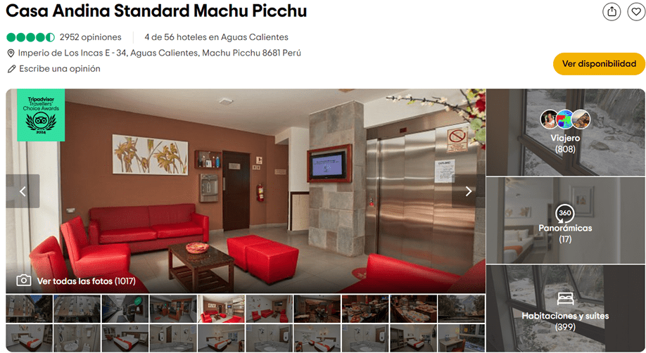 Casa Andina Standard Machu Picchu es un hotel acogedor y confortable que te ofrece una ubicación estratégica en Aguas Calientes. Este hotel cuenta con 54 nuevas y cómodas habitaciones que te permitirá descansar y reponer energías para disfrutar el recorrido de la ciudadela. En este alojamiento destaca la espectacular vista al río Vilcanota, dotando al restaurante de un ambiente especial.