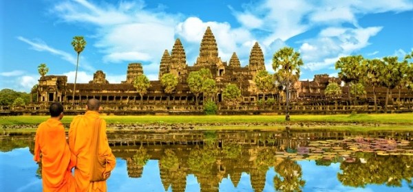 Angkor (ciudad) Wat (templo), declarado Patrimonio de la Humanidad en 1992, con unos 200 kilómetros cuadrados de extensión, figura incluso en la bandera de Camboya. Es